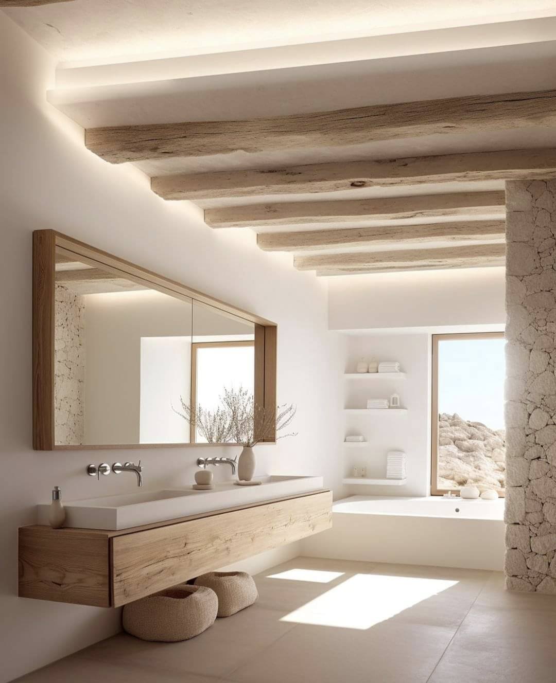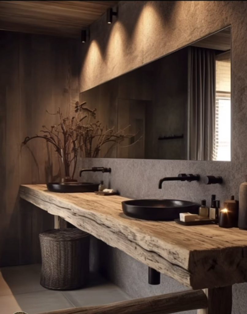 A deep attraction for custom integration achieving, balancing rustic decor with refined elements.